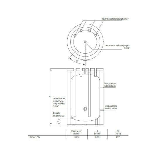 Kospel SVK-100 to nieemaliowany zbiornik buforowy o pojemności 104 l, wyposażony w izolację poliuretanową klasy A o grubości 65 mm.